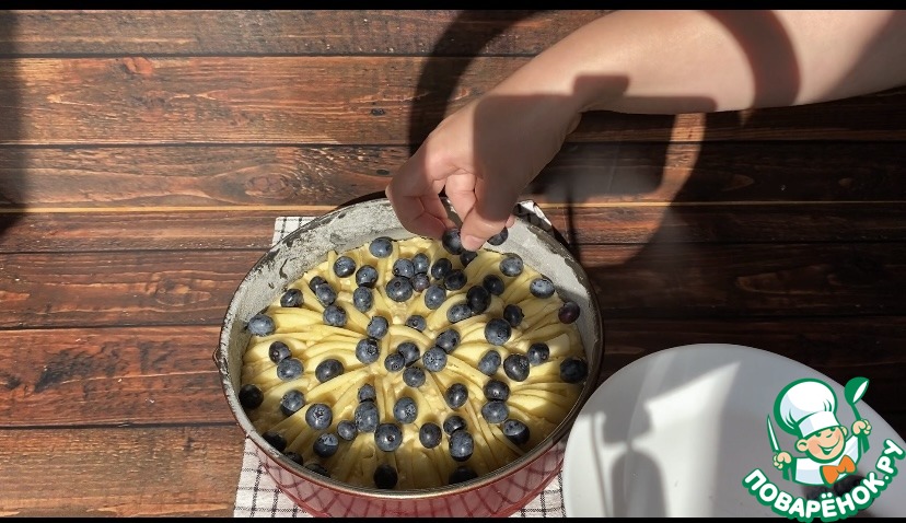 Рецепт «Творожный пирог с яблоками и голубикой»: