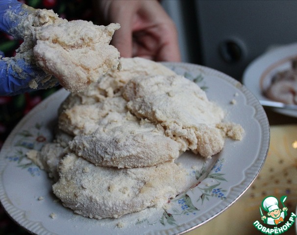 Для того, чтобы бакхендель получилась сочной и вкусной его обязательно сбрызгивали лимонным соком, солили и перчили и мариновали не менее часа.