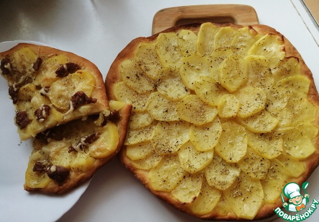 Pizza con Patate. Есть много вариантов пиццы из картофеля. Хочу предложить два, разные по вкусу и по структуре. Одна мягкая, а другая хрустящая. Особенно вкусно с томатным соком.