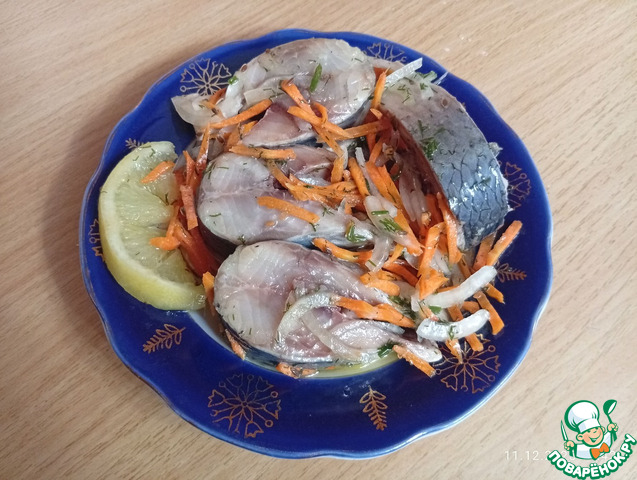 3. В некоторых рецептах сельдь складывают в банку с овощами сразу, пересыпая солью и сахаром. На мой взгляд при такой закладке продуктов сельдь не успевает просолиться, а вот овощи становятся пересоленными. Поэтому рекомендую сначала посолить сельдь, как я написала, а потом уже мариновать её с овощами и лимоном.