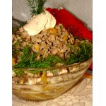 Затем фарш. Все ставим в духовку на 40 минут, на 180 гр.