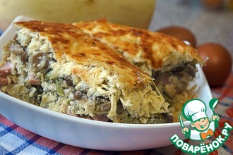 Все переложим в форму, у меня силиконовая и поставим в духовку на 20 минут, затем посыпаем сыром и еще 10 минут.