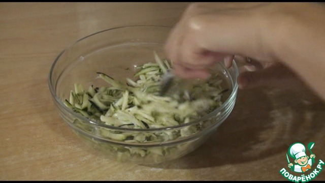 Кабачки или цукини помоем, если молодые, то кожу не чистим, натрем на крупной терке.