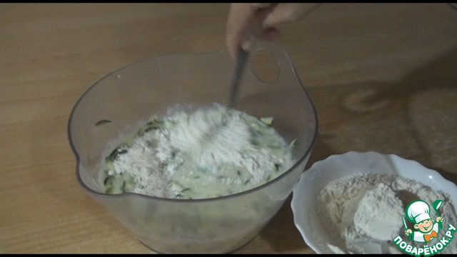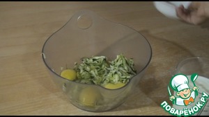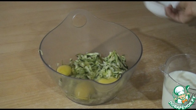 Потом отожмем руками кабачок, сок нам больше не нужен. Добавляем яйца.