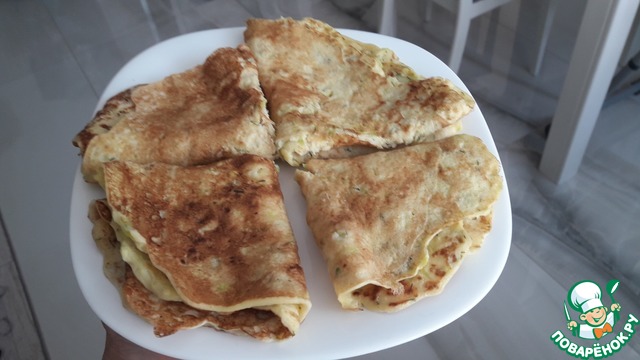 На разогретую сковороду добавляем немного растительно масла, с помощью половника выливаем тесто и распределяем его по сковороде, жарим как обычные блинчики с двух сторон.