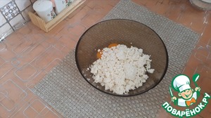 В миску выкладываем творог и яйца.