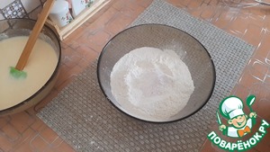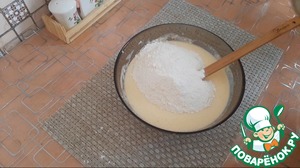 Постепенно добавляем муку и замешиваем тесто.
