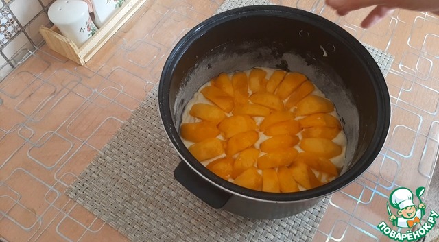 Творожный пирог с персиками в мультиварке