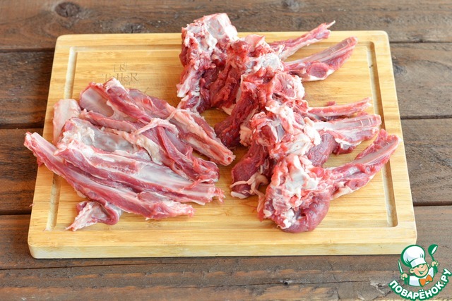 Для жаркого лучше использовать мясо с косточкой, я взяла рёбрышки.