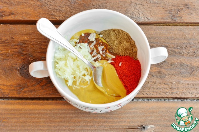 Приготовьте маринад, смешав все указанные продукты для маринада