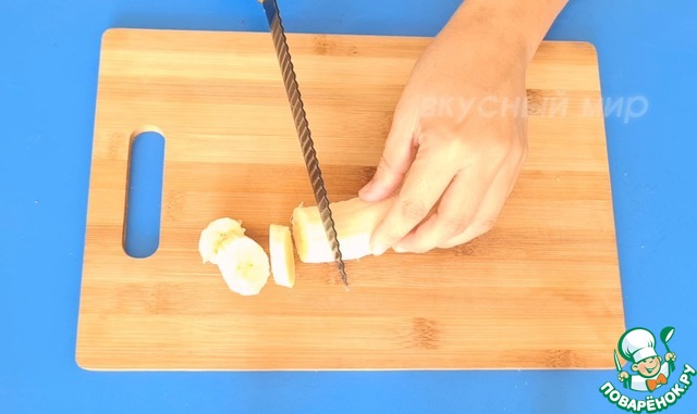 Бананы для торта режу кружочками, толщиной 2-3 мм.