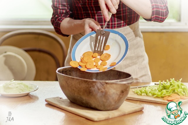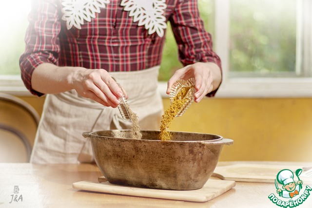 Подготовьте необходимые ингредиенты. Подберите подходящую посуду. У меня- это алюминиевый казан, но подойдет и чугунная кастрюля с крышкой.
