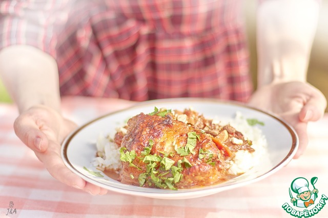 Можно подавать сразу с белым пресным рисом, но если в последний раз набраться терпения и дать блюду переночевать под крышкой и теплым полотенцем, то на следующий день получится просто бомба. Мясо будет таять во рту.