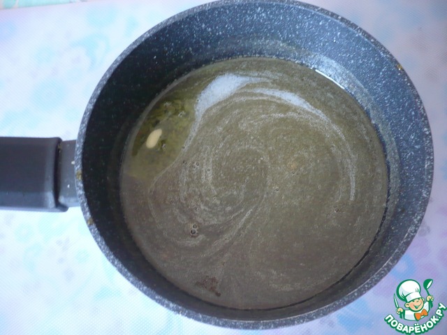 Добавьте сливочное масло в растопленный сахарный сироп, хорошо перемешайте до однородной массы и отставьте в сторону до полного остывания.