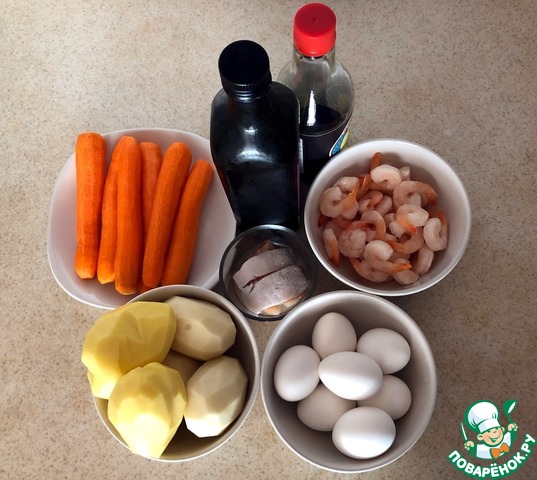 Ингредиенты для «Креветки с семгой и вареными овощами»: