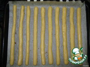 Каждую раскатываем руками колбаской длиной 26 см и укладываем на лист (у меня выпекалось на 3 листах).