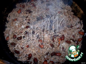 Довести до кипения, убавить огонь и тушить под крышкой минут 15 - пока вода не выпарится.