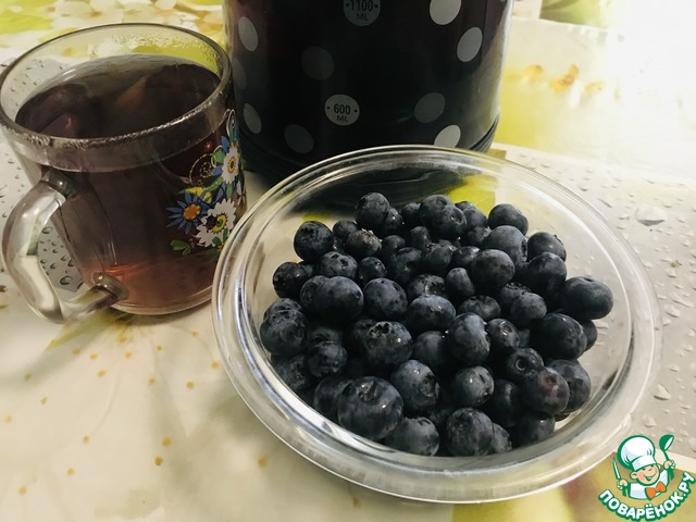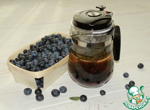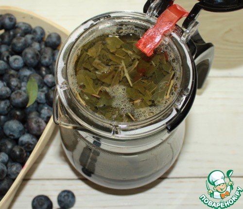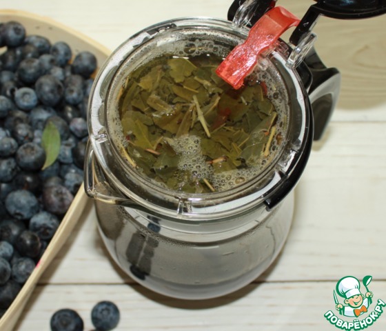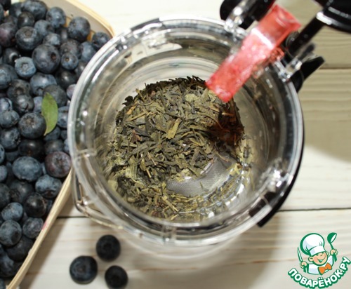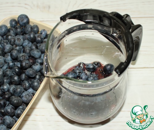 Голубику вымыть и обсушить. Часть ягод оставить целиком (примерно 50 гр.), остальные размять вилкой. Все смешать и переложить в чайник.