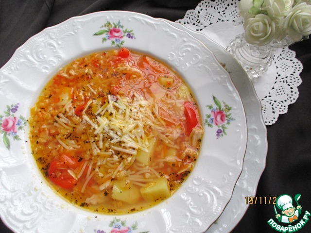 В Латвии холодный август, по ночам +8-10*, мёрзнем. Настала пора горячих супчиков. Это быстросуп с итальянского сайта.