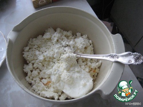 • Творог поместить в глубокую миску. У меня было 3 вида творога (все, что в холодильнике было - масса, самодельный творог и обезжиренный).