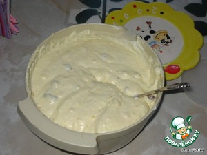 • Добавить изюм, размягченное сливочное масло, манку. Самыми последними идут сильно взбитые белки. Мешаем очень аккуратно.