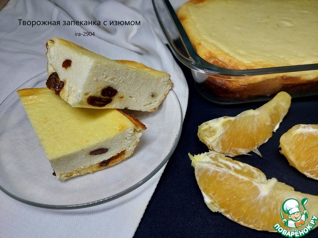 Ингредиенты для «Творожная запеканка с изюмом»: