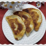 На разогретую и абсолютно сухую сковороду выложить заготовку и жарить на среднем огне до золотистых пятнышек снизу.