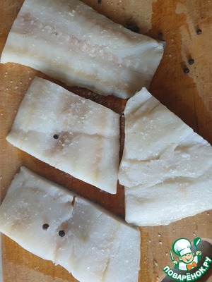 Рыбное филе нарежьте порционными кусками, сильно не мельчите - чтобы при жарке рыба сохранила свою сочность. Посолить, поперчить по вкусу.