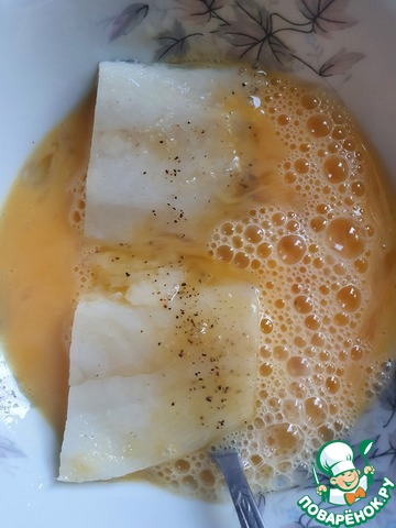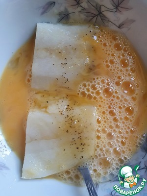 Яйца немного взбить вилкой. Хорошо разогреть фритюр. Это важно! При опускании рыбы в недостаточно разогретое масло будет впитываться лишний жир! Подготовленные куски окунуть в яичную массу