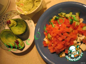 «Мерцанье звезд, горящих болью дикой Порывы слeз в ночной вселенной. Тихо... Бокал вина, вкус мeда, запах страсти. Куда бежать от медленной напасти?... » А может лучше этому поддаться?.. Все романтично может с ужина начаться.. .. возьмем немного свежего огурчика и помидорчика.. семги и брынзы… приготовим заправку из авокадо, горчицы, лимонного сока, оливкового масла и специй..