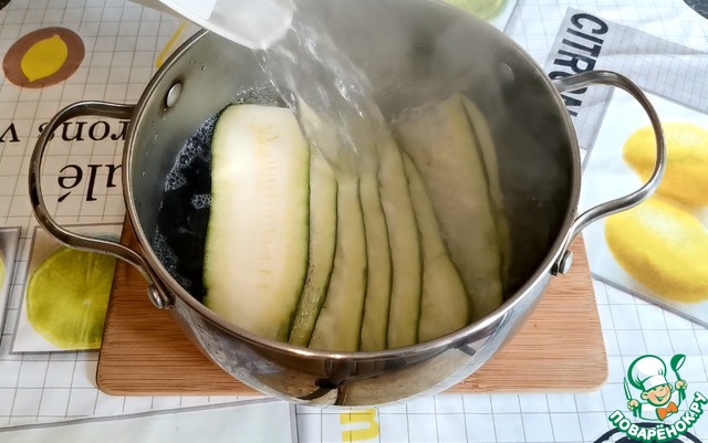 Для того, чтобы кабачки сворачивались в рулетики, их нужно подержать в кипятке.