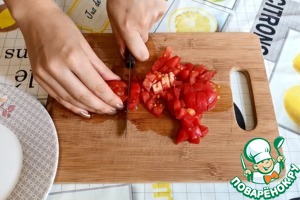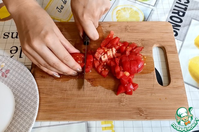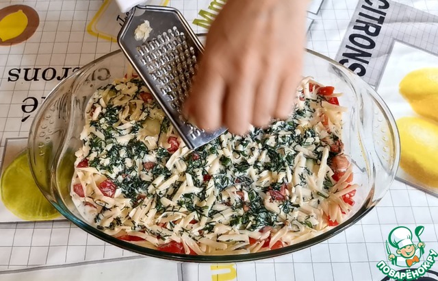 Поверх рулетиков распределяем нарезанные помидоры и посыпаем натертым сыром.