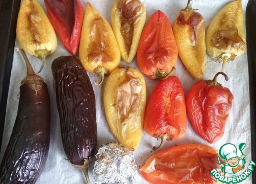 Сначала необходимо запечь перцы.