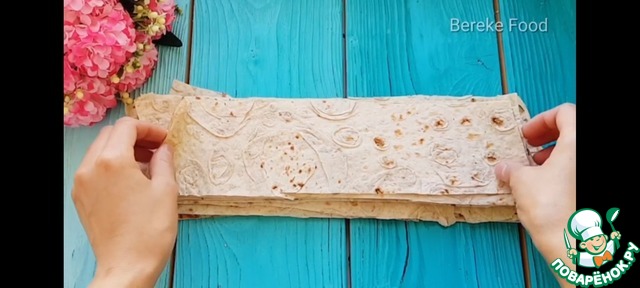 Лаваш нарезаем на полоски шириной 8 - 10 сантиметров.