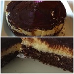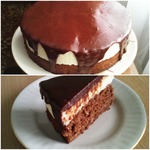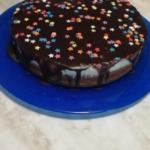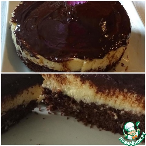 Спустя 1 час освобождаем торт от кольца и выравниваем края. Затем, сверху покрываем еще горячей шоколадной заливкой.