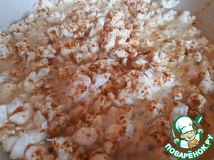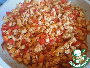 Обжарьте белое куриное мясо на масле, чтобы оно схватилось со всех сторон. Добавьте приправу к мясу и овощам Kamis, посолите, перемешайте.
