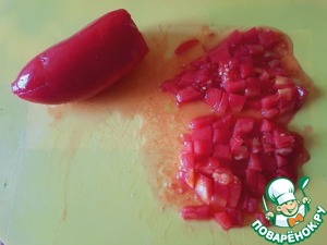 Обдайте помидоры кипятком, очистите от кожицы и нарежьте кубиками.