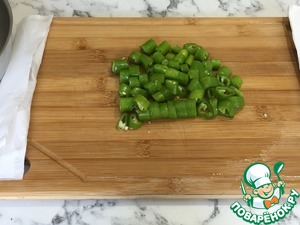 Удаляем плодоножки у баклажан. Режем их на четвертинки, далее нарезаем кубиками.