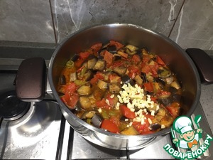 Выключаем огонь, добавляем чеснок, перемешиваем и снимаем с плиты.