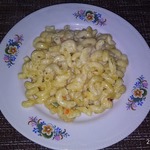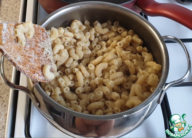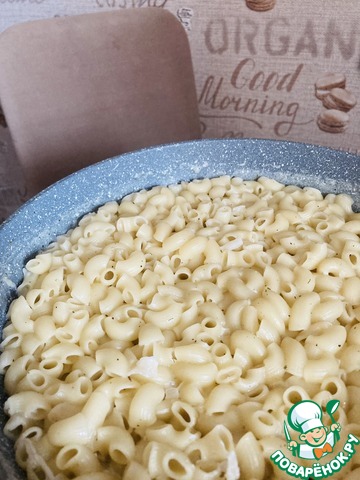Единственное - было мало молока, доливал в процессе готовки воду. Поэтому, наверное, макароны получились со вкусом, но без соуса