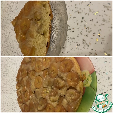 Дальше выпекаю, всё хорошо. Переворачиваю сразу - иии... пирог разрывается надвое: на тарелке тесто, в форме остаются все бананы.