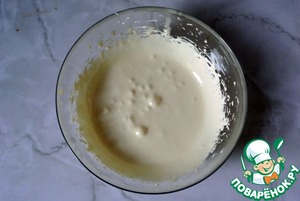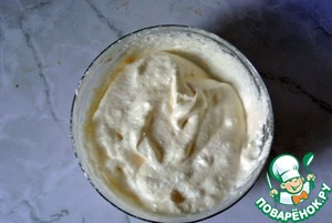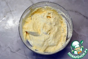 Отделить белки от желтков. Желтки взбить с 40 грамм сахара до светлой пышной массы.