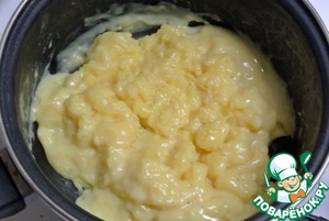 Довести до кипения и влить тонкой струйкой в желтковую массу. Перелить смесь в сотейник, поставить на огонь и, постоянно помешивая, варить до загустения. Дать остыть.