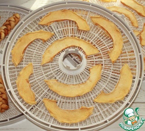 5. Готовность сушеной дыни определяется достаточно легко, она должна быть мягкой, эластичной и слегка липковатой.