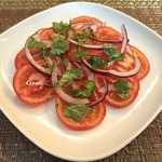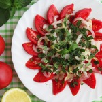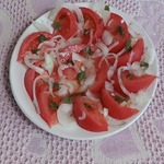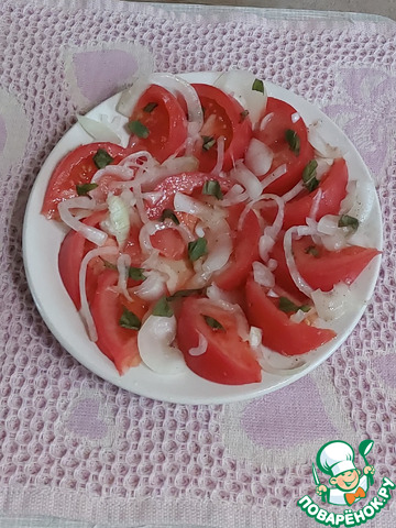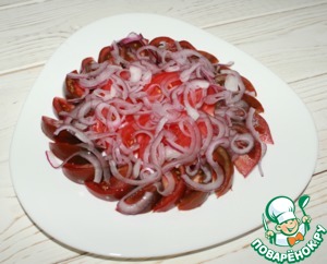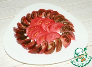 Помидоры нарезать произвольными кусочками и выложить на тарелку.