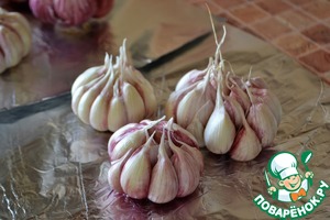 Чеснок очистить от внешней шелухи, завернуть в фольгу.