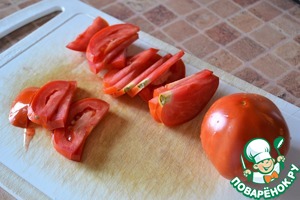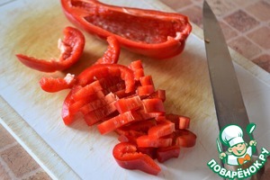 • Болгарский перец разрезать вдоль, удалить семечки и перегородки с хвостиком, нарезать ломтиками.