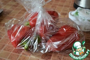 Болгарские перцы промыть, поместить в пакет для выпечки.