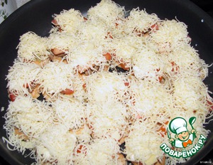 • Посыпаем все тертым сыром и отправляем в горячую духовку.