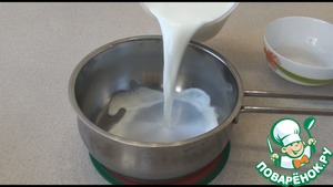 Добавляем плитку белого шоколада и размешиваем пока он не растворится.
